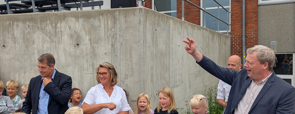 Torsdag den 14. august tog vi hul på næste kapitel for Engesvang Skole – og alle skolens elever var med til at gøre dagen festlig. Begejstringen var stor, ikke mindst da borgmesteren Ib Lauritsen, udvalgsformanden Annette Mosegaard og skolelederen Claus Bredahl Sørensen greb spaden – og børnene stod bagefter klar til selfies med borgmesteren.