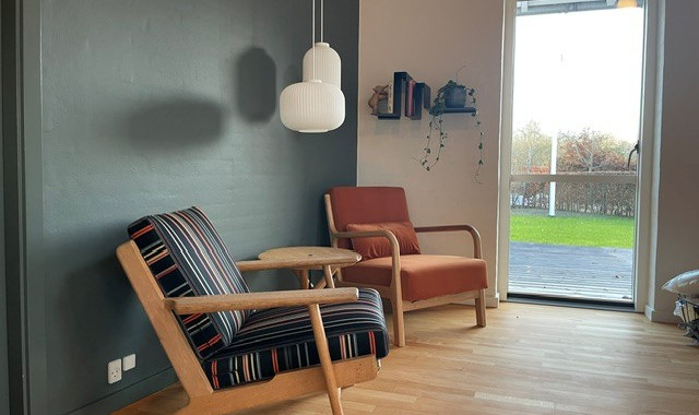 I 1996 opførte tegnestuen denne villa til en familie med små børn. Da børnene flyttede hjemmefra, oplevede ægteparret, at deres behov ændrede sig, og i 2020 hjalp vi dem derfor med en lettere ombygning og opfriskning af huset. Resultatet er blevet et fint projekt med fokus på materialernes påvirkning af rummet – lys, luft, åbenhed og kontakt til udearealerne.
